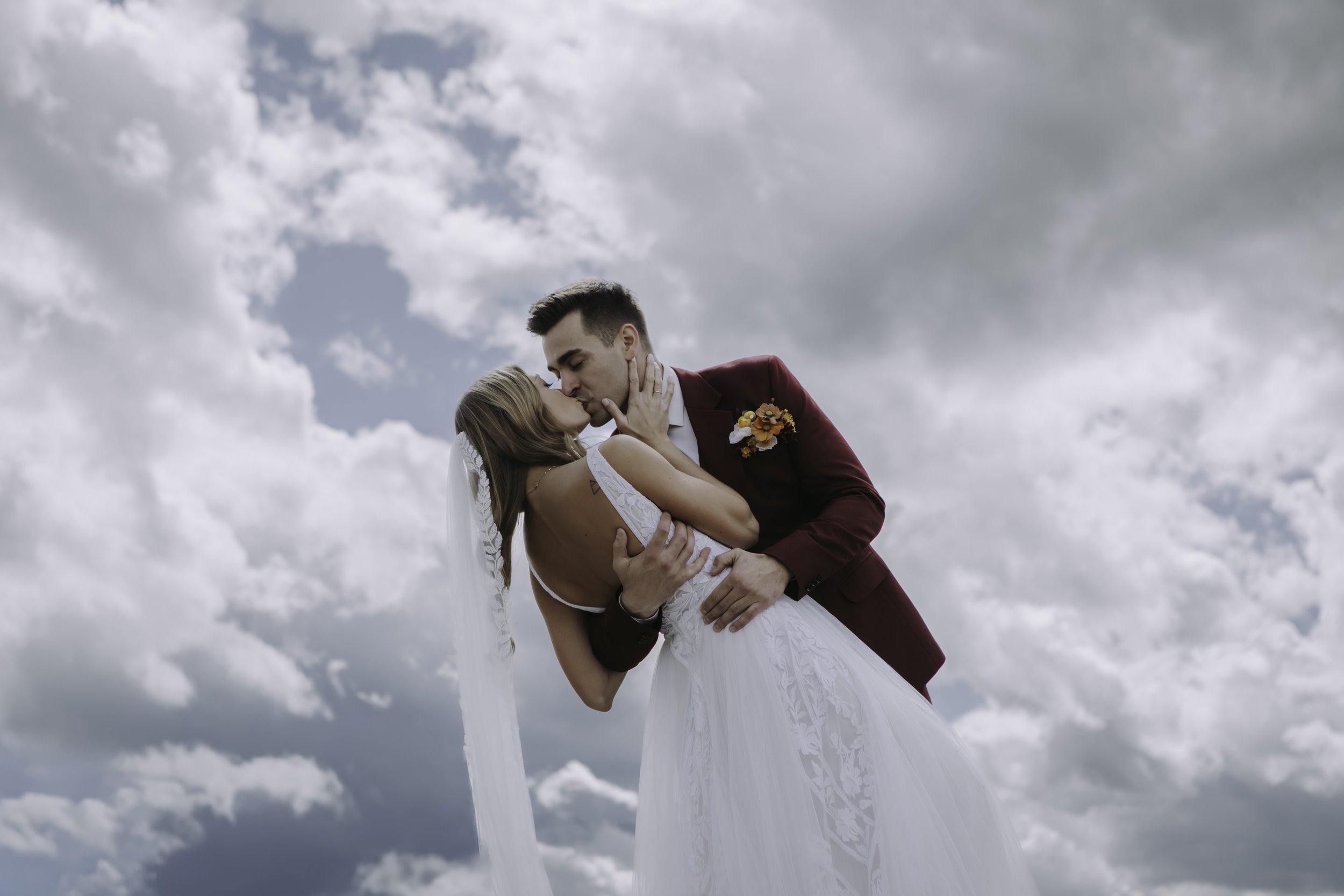 This was such a great wedding day! We had not done an engagement session, so I was meeting Delaney and Matt in person for the first time. I arrived early to scope out locations and settle in with everyone before shooting. I photographed the girls finishing up getting ready, got some portraits of them in their robes, Delaney getting into her dress, and some venue shots before heading over to Matt. Once they were both ready, we blindfolded Matt and all hopped in a jeep to head up the mountain for first look and private vows. We had gorgeous views at the top in all directions! I set them up for first look then used my long zoom lens to give them privacy for their reading their vows to one another. Then we took some couples portraits and headed back to the venue.