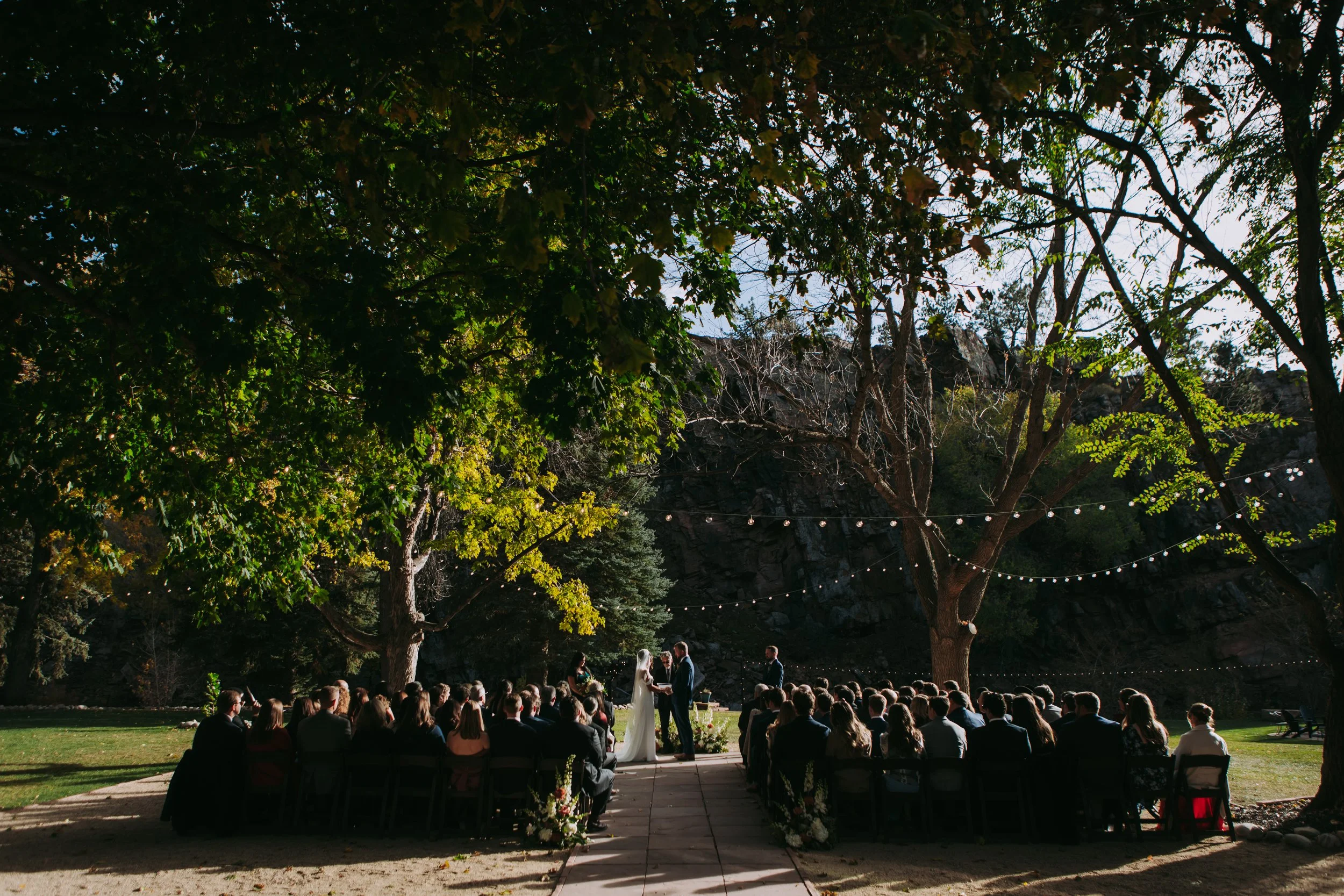 All of the wedding party was tucked away before ceremony as guests arrived. The sun was low in the November sky and cast beautiful light across the scene as the ceremony got started. Their officiant/family friend did a beautiful job with the ceremony, perfecting blending humor, sincerity, and story. A great officiant makes for a memorable ceremony. He was so good I actually assumed he was a professional and asked his info. I was really hoping to recommend him! Anyway, a unique feature I love about this venue from a photographer’s perspective is that I was able to photograph from ALL angles, including behind the couple to get all of their guests faces in the photos. The more angles that are accessible, the better the storytelling.